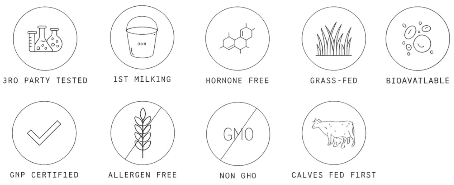 Our colostrum is a nutrient-rich superfood sourced from grass-fed cows on U.S. dairy farms. We collect exclusively first-day milking colostrum - packed with hundreds of bioactive ingredients that help support immunity, gut health, hair, skin, nails and athletic performance.