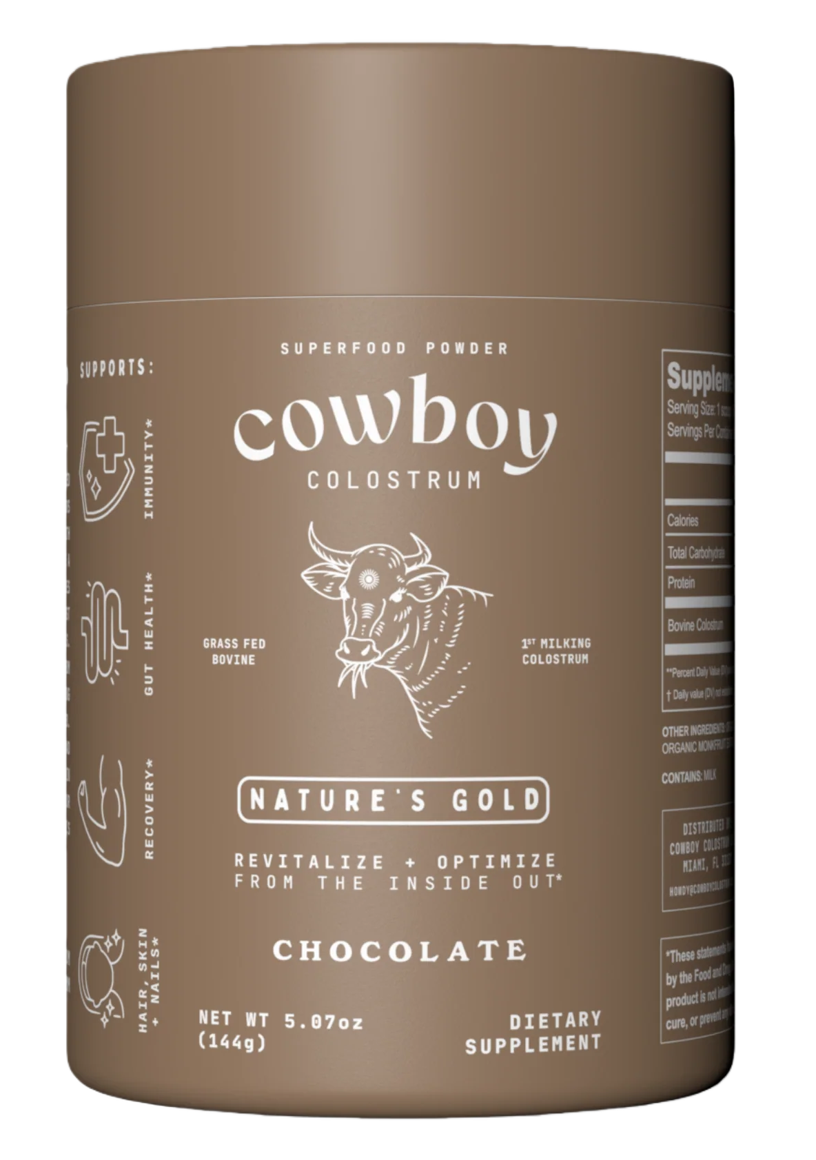 Cowboy Colostrum, a bicoastal wellness brand rooted in nature, rowdiness, and wholesome living, pays homage to the essential bond our ancestors forged with bovines. We specialize in premium colostrum supplements sourced from grass-fed cows, delivering a unique wellness experience through larger serving sizes, affordability, unrivaled quality, and delicious milky flavor profiles. At Cowboy Colostrum, we are not only committed to offering a distinctive approach to well-being but also prioritize calf welfare, ensuring a sustainable and balanced perspective on wellness. Our brand celebrates the enduring legacy of the primal connection between humans and bovines, bridging the gap between traditional practices and contemporary wellness.